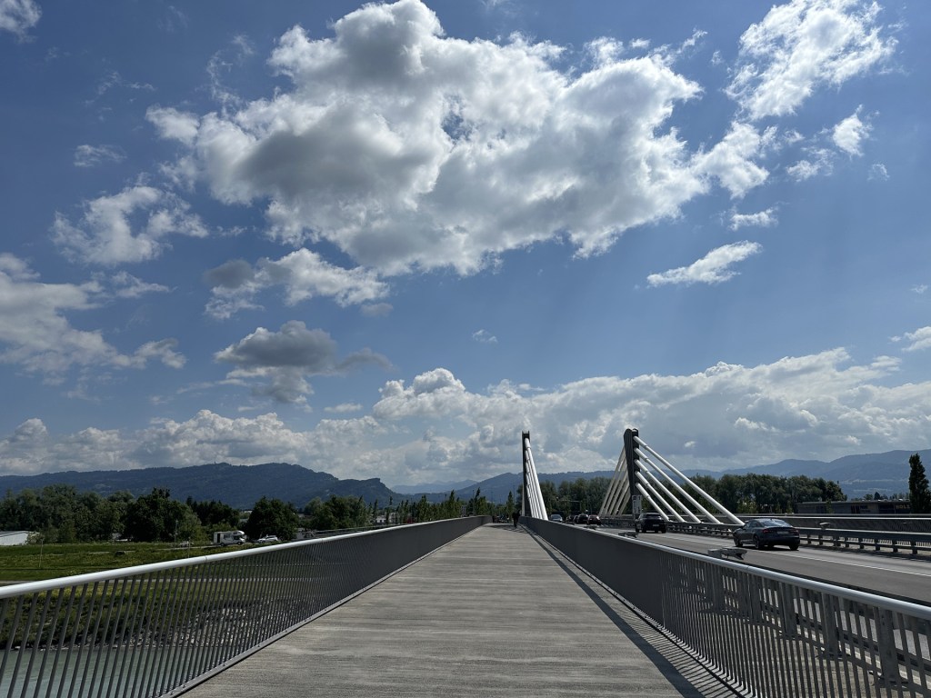 Žádný servis cestou nevidím, a když už, tak zavřený – je neděle! Takže prostě jedu dál. A dofukuju, a dofukuju. Ani jsem si nestihl užít krásy Bodamského jezera, u kterého se láme Švýcarsko do Německa. Několikrát předjíždím starší pár na elektrokolech, který mě vždy za chvíli zase předjede – protože dofukuju.