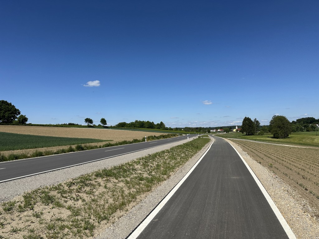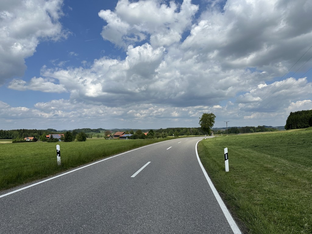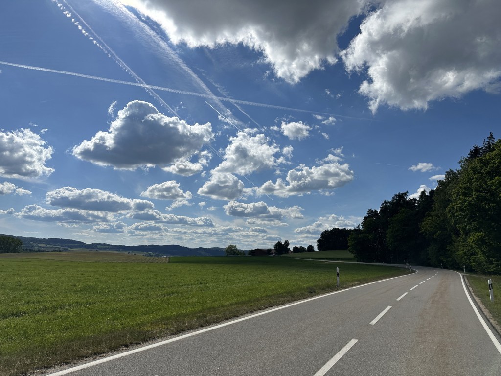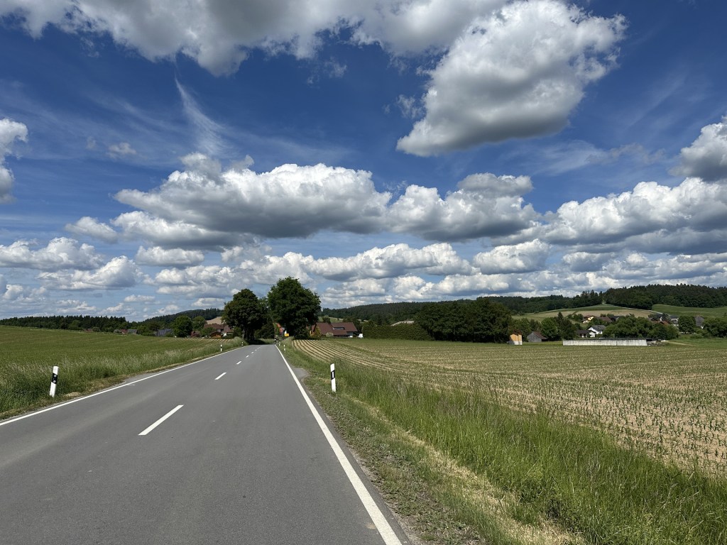 Užívám si ale naprosto neskutečnou německou cyklo-infrastrukturu. Na silnicích, jak by se u nás řeklo, 1. třídy, jedu vždy max chviličku, abych se dostal buď na cyklostezku, nebo okresku. Cyklostezky jsou tu všude. Mezi vesnicemi v polích, v lesích samostatně kousek od hlavní silnice, ve vesnicích většinou buď vyvýšené jako chodník na jedné straně, nebo s vyhrazeným cyklopruhem vyznačeným čarou. Je to skvělý, a rád bych to někdy viděl u nás. O tom později.
