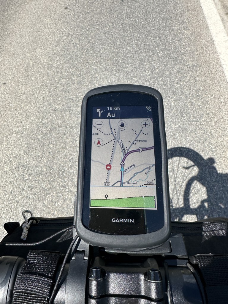 Je to jediný den, kdy se budu pohybovat v kopcích, které snesou přísnější měřítko. Postupem času se sžívám s nově zakoupenou navigací Garmin Edge 1040 a cesta jde skvěle. Překonávám první kopce, užívám si nádhernou zelenou krajinu a navigace se mě snaží vést mimo hlavní silnice.